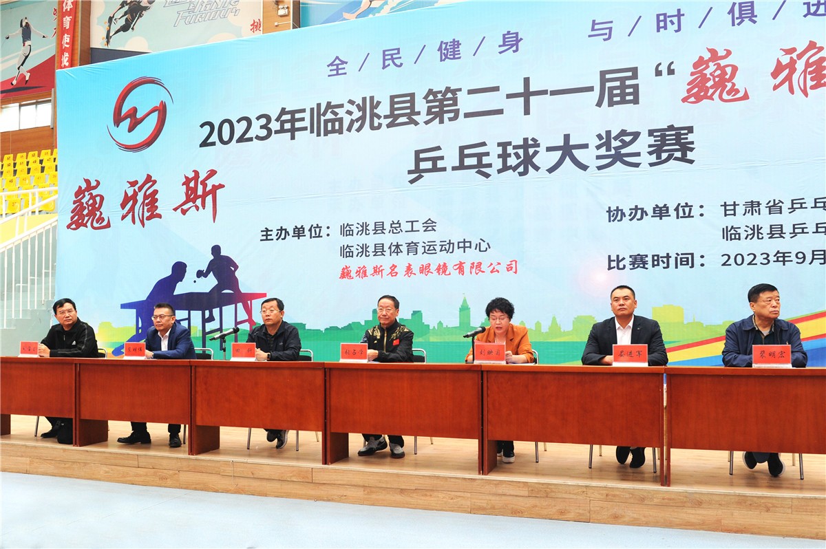 甘肅省教育廳后勤中心主任、甘肅省乒乓球運(yùn)動(dòng)協(xié)會(huì)副會(huì)長(zhǎng)張占學(xué)、臨洮縣人大常委會(huì)副主任、臨洮縣總工會(huì)主席劉映菊、巍雅斯名表眼鏡有限公司總裁裴明偉、臨洮縣總工會(huì)常務(wù)副主席田科、臨洮縣體育運(yùn)動(dòng)中心主任晏進(jìn)軍、巍雅斯名表眼鏡有限公司總裁裴明宏、臨洮縣乒乓球協(xié)會(huì)主席劉寶生等來(lái)賓參加開幕式。