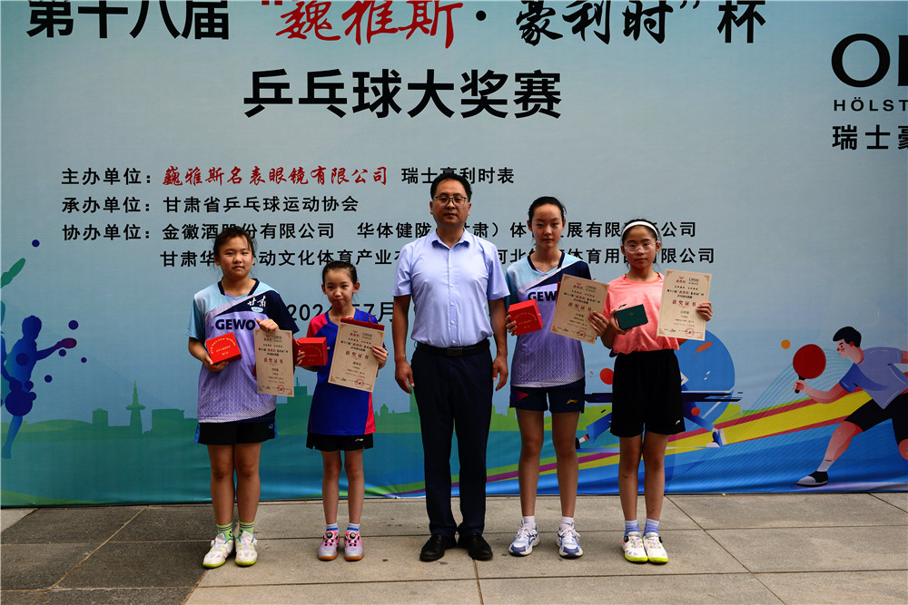 經(jīng)過(guò)5天緊張激烈的比賽,第十八屆“巍雅斯·豪利時(shí)”杯乒乓球大獎(jiǎng)賽于7月23日?qǐng)A滿(mǎn)落幕。甘肅省乒乓球運(yùn)動(dòng)協(xié)會(huì)領(lǐng)導(dǎo)和巍雅斯名表眼鏡有限公司董事長(zhǎng)、總裁等嘉賓出席閉幕式,并為獲獎(jiǎng)運(yùn)動(dòng)員頒獎(jiǎng)。