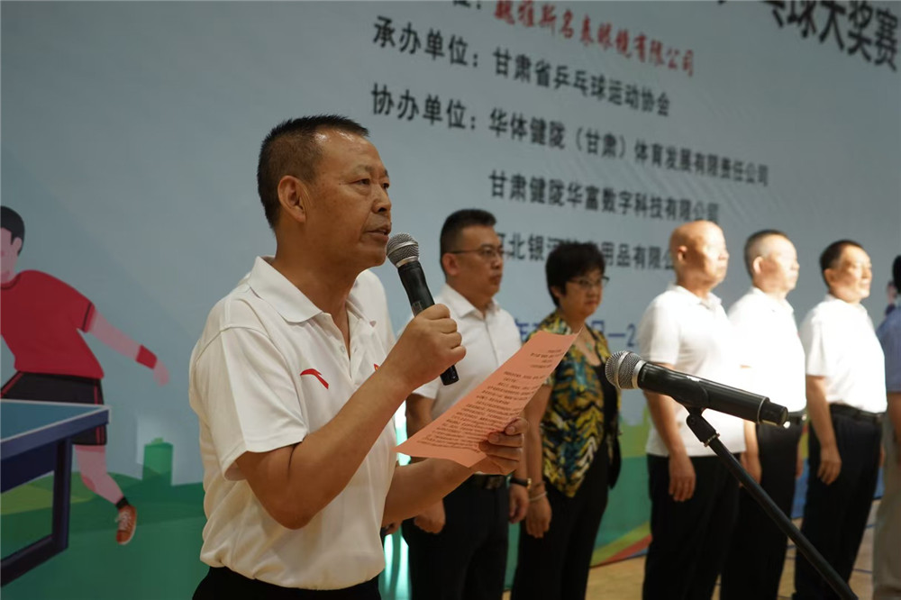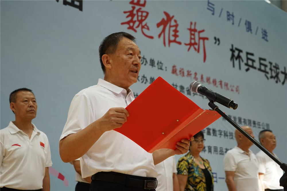 甘肅省乒乓球運動協(xié)會顧問任燕順,中國鐘表商會副會長、甘肅省眼鏡協(xié)會原會長、甘肅省乒乓球協(xié)會名譽副會長、巍雅斯名表眼鏡有限公司董事長裴正江,甘肅省乒乓球運動協(xié)會會長韓力,甘肅省乒乓球運動協(xié)會黨支部書記苗發(fā),全聯(lián)房地產(chǎn)商會黨委副書記、甘肅省城建商會黨委書記、甘肅省乒乓球運動協(xié)會名譽副會長、華富信息集團董事長陳啟建,甘肅省愛國擁軍促進會常務(wù)副會長、甘肅省乒乓球運動協(xié)會副會長、蘭州市籃球運動協(xié)會主席、蘭州藍酒實業(yè)集團董事長宗榮,青海省乒乓球運動協(xié)會副主席高麗嚴,寧夏自治區(qū)乒乓球運動協(xié)會副會長張智勇,巍雅斯名表眼鏡有限公司總裁裴明偉,副總裁裴明宏,副總裁、甘肅樺琳房地產(chǎn)開發(fā)有限公司常務(wù)副總經(jīng)理楊丁輝及有關(guān)領(lǐng)導(dǎo)、運動員、裁判員、教練員、工作人員一起參加了簡樸但氣氛熱烈的大獎賽開幕式。