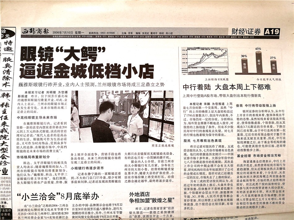 巍雅斯眼鏡行開業(yè) 大鱷逼退金城低檔小店