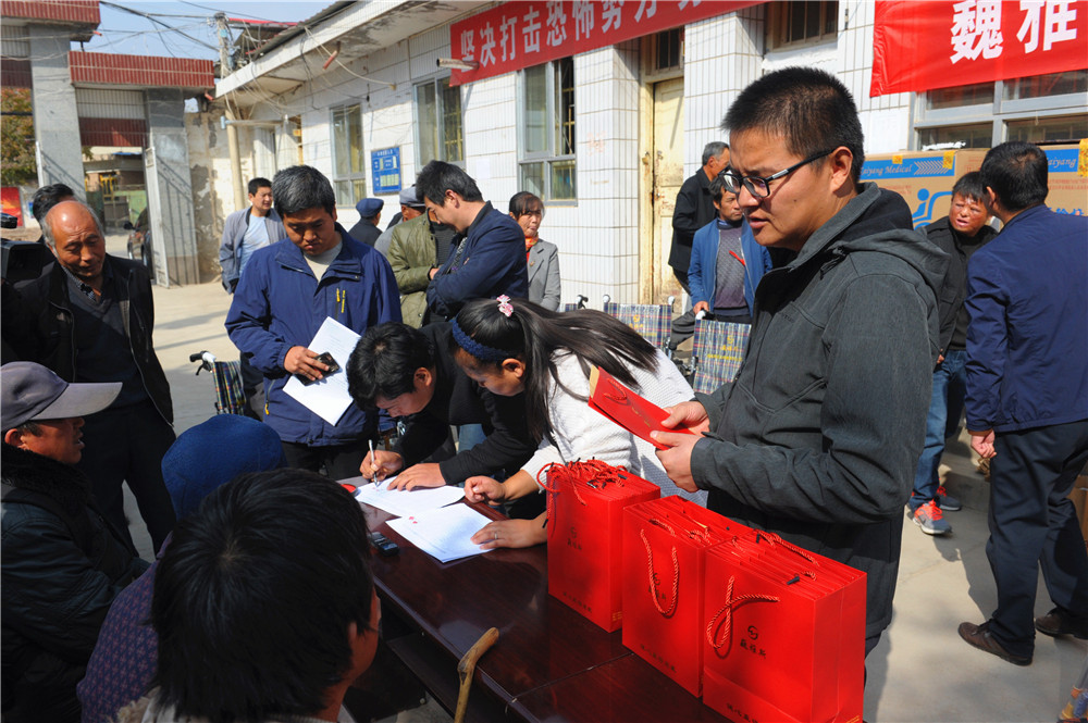 10月24日上午,巍雅斯名表眼鏡有限公司助殘扶貧捐贈儀式在臨洮縣中鋪鎮(zhèn)政府舉行,巍雅斯名表眼鏡有限公司向中鋪鎮(zhèn)殘疾人資助了19100元現(xiàn)金并捐贈了價值11970元的輪椅及拐杖等,希望能夠解決受捐助的殘疾人當(dāng)前的困難。臨洮縣人大常委會主任蔣景林參加捐贈儀式并講話,高度評價了巍雅斯在社會公益慈善事業(yè)常年來所做的努力。